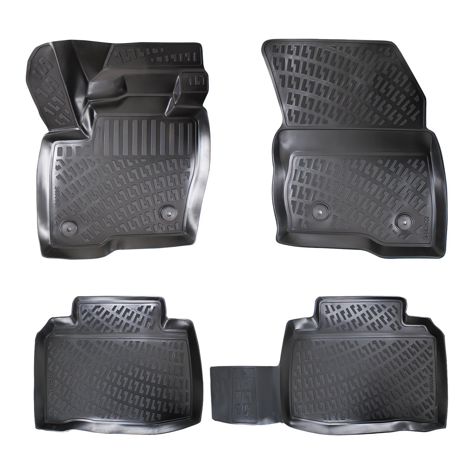 - Vollständige Bodenabdeckung: Ein Set aus vier Gummifußmatten garantiert eine umfassende Abdeckung des Fahrzeugbodens, einschließlich der Bereiche unter den Sitzen der Fahrer- und Beifahrerseite mit Fußstütze sowie der hinteren Sitzreihen mit Tunnel, und bietet maximalen Schutz sowie ein einheitliches Aussehen des Innenraums.