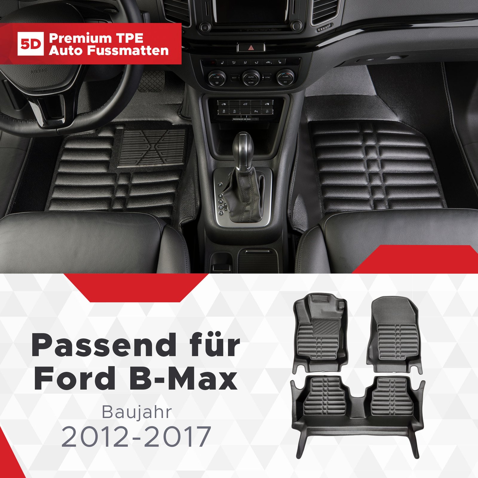Ford B MAX – kompletter Satz von hochqualitativen Fußmatten aus TPE-Kunststoff