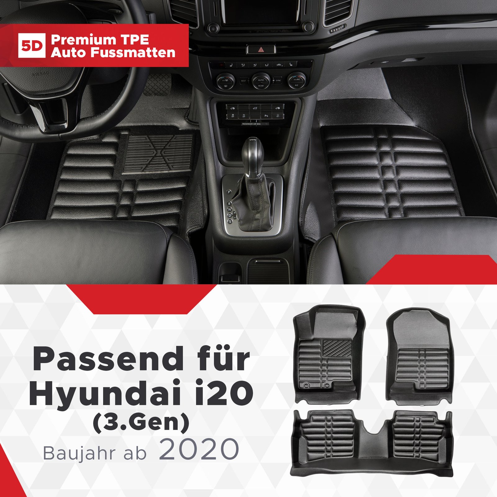 Premium 5D Fußmatten-Set für Hyundai i20 (3. Gen), (Baujahr ab 2020)