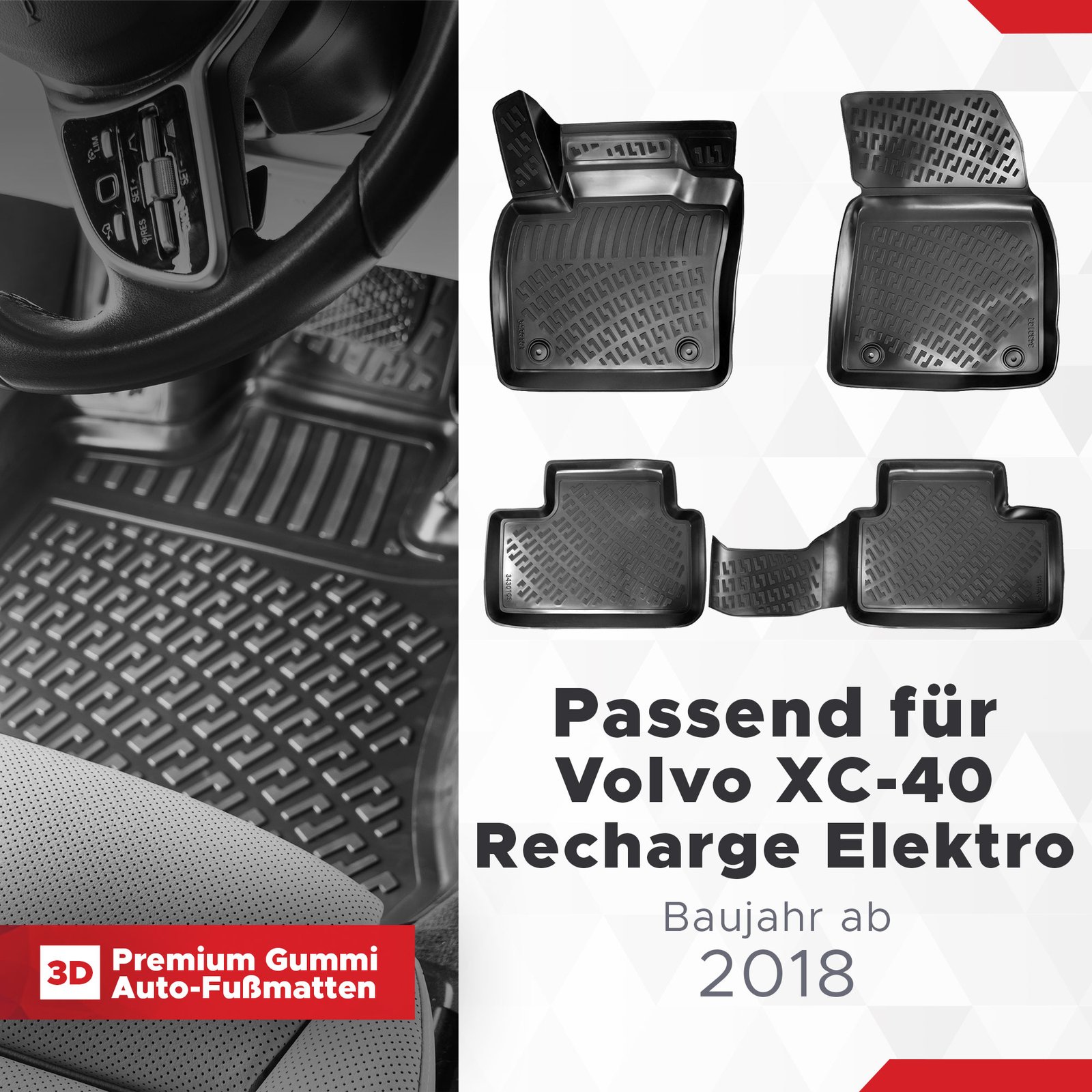 3D Volvo XC-40 Recharge ELEKTRO Gummifußmatten in exakter Passgenauigkeit